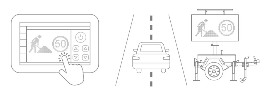 الـ VMS هو نوع من اللوحات الإلكترونية الصغيرة المتنقلة تُثبت أعلى مركبات إنشاء الطرق. وبالنيابة عن السكان والمناطق التعليمية والممرات المدرسية، يهدف “لوح ملاحظات السائق” إلى رفع وعي السائقين بالسرعة وسلامة الطريق. أحيانًا يجب استخدام اللوحات الإلكترونية المتغيرة المثبتة على المركبات (VMS) للتعامل مع حالات التباطؤ على البنية التحتية الرئيسية للطرق.